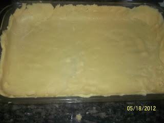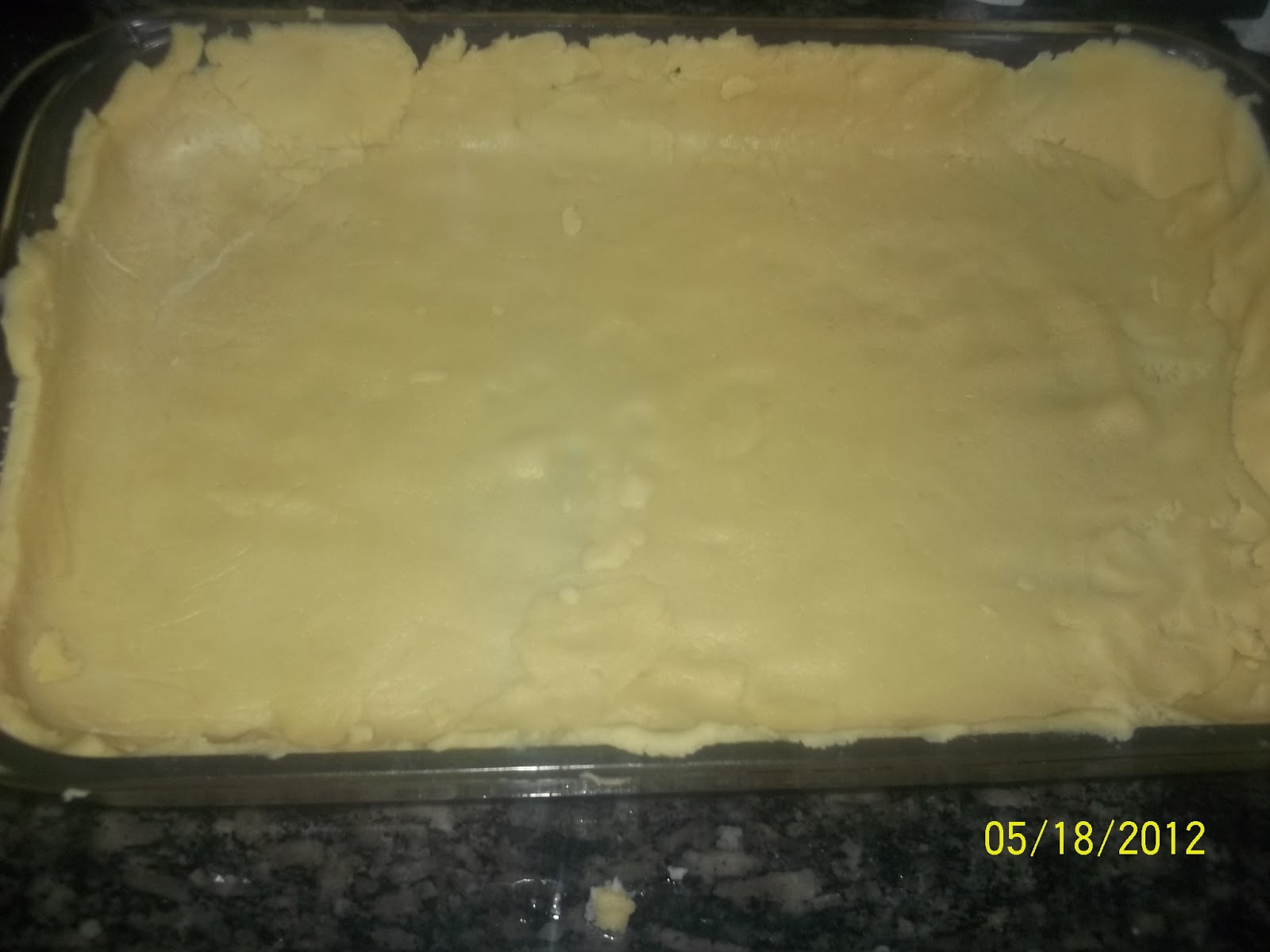 Abra metade da massa num tabuleiro, recheia e cubra com a outra metade da massa.